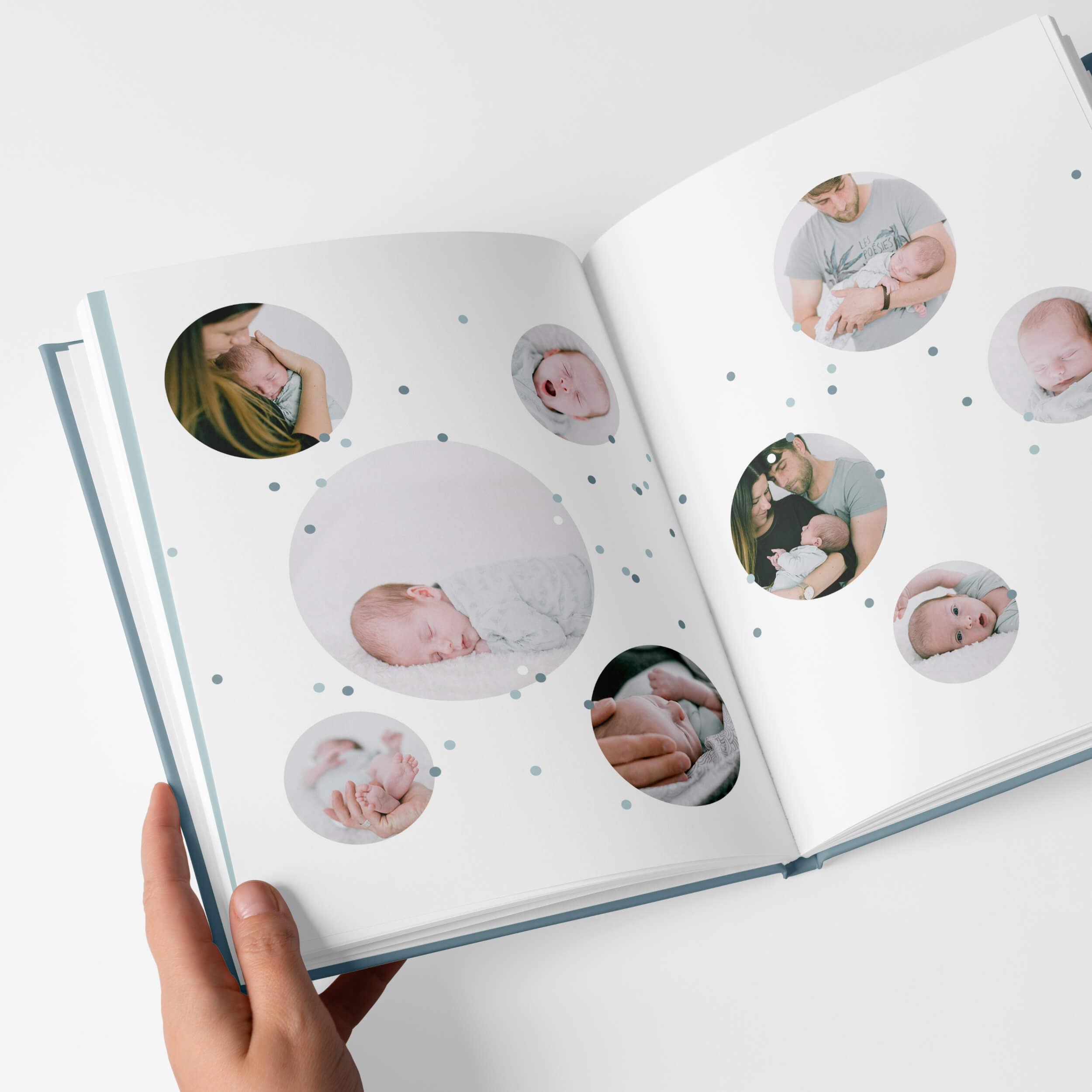 Ik wilde graag dat de boeken leuk zijn om vaak te bekijken, voor jou én voor je kindje. De kleuren vormen de basis in dit design, ik heb ze in balans gebracht met het verhaal. Als je goed kijkt zul je zien dat ze precies aansluiten bij de fases die je kindje op de foto's doormaakt.