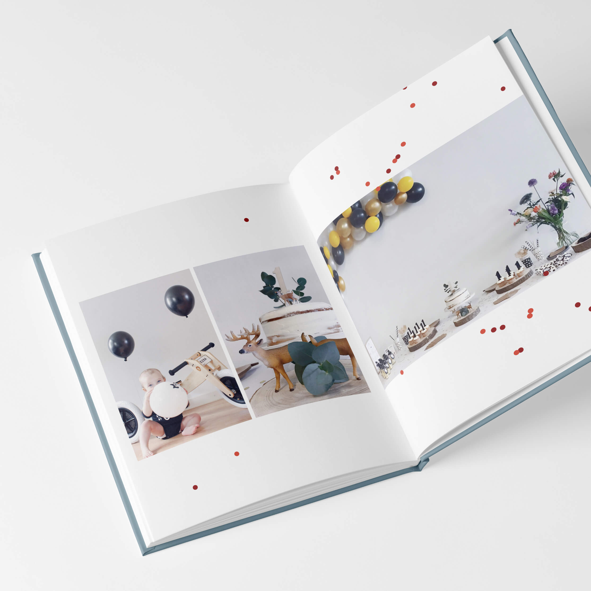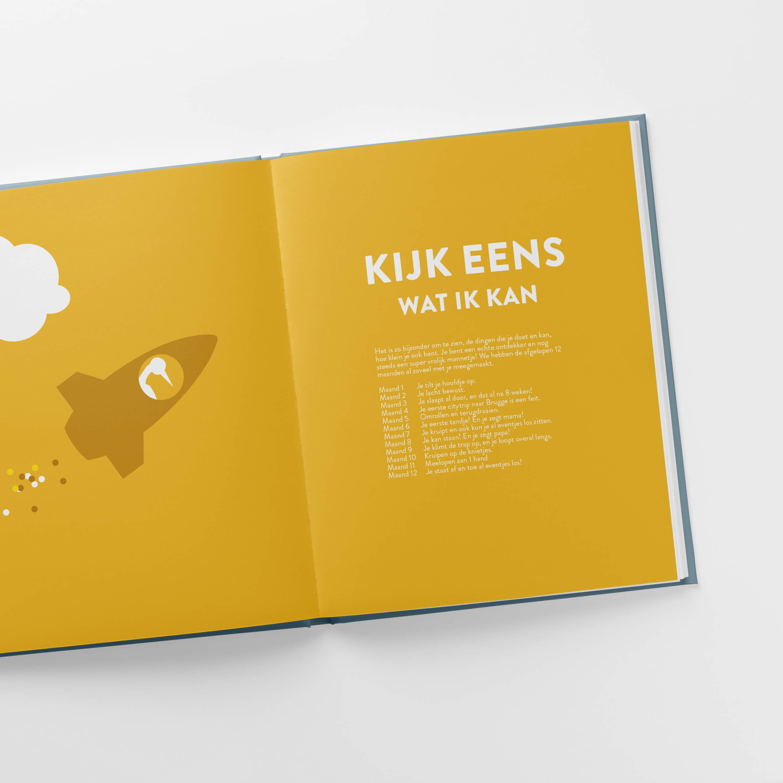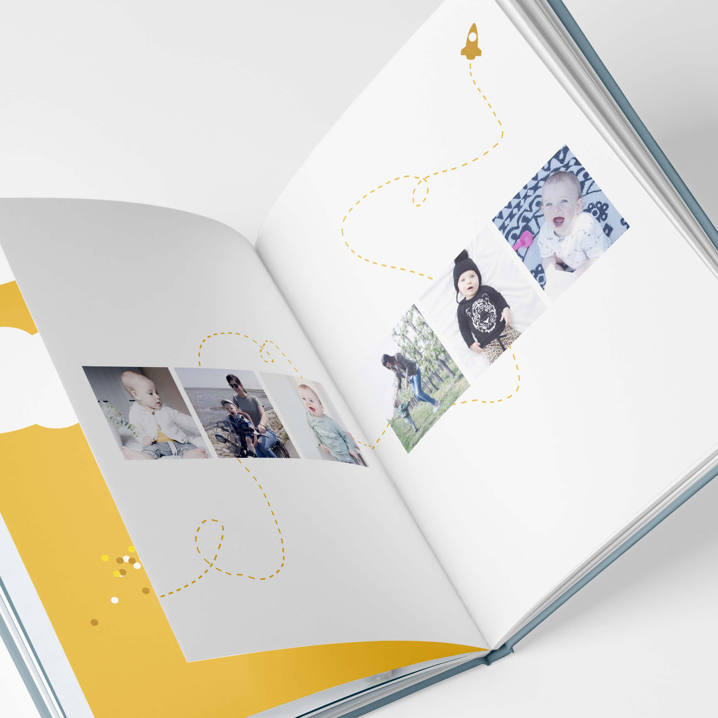 Er is ruimte voor veel hoogtepunten, zoals de geboorte, jullie familie en vrienden, de belevenissen van de eerste 12 maanden en de wonderlijke ontwikkeling van je kind. Ook kun je de eerste vakantie laten zien en natuurlijk het grote feest van de allereerste verjaardag.
