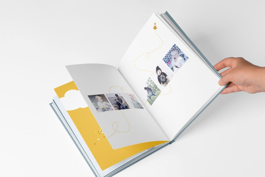 Je vertelt het verhaal van je baby’s eerste jaar aan de hand van verschillende hoofdstukken. Zo weet je zeker dat alle belangrijke momenten een plek krijgen.