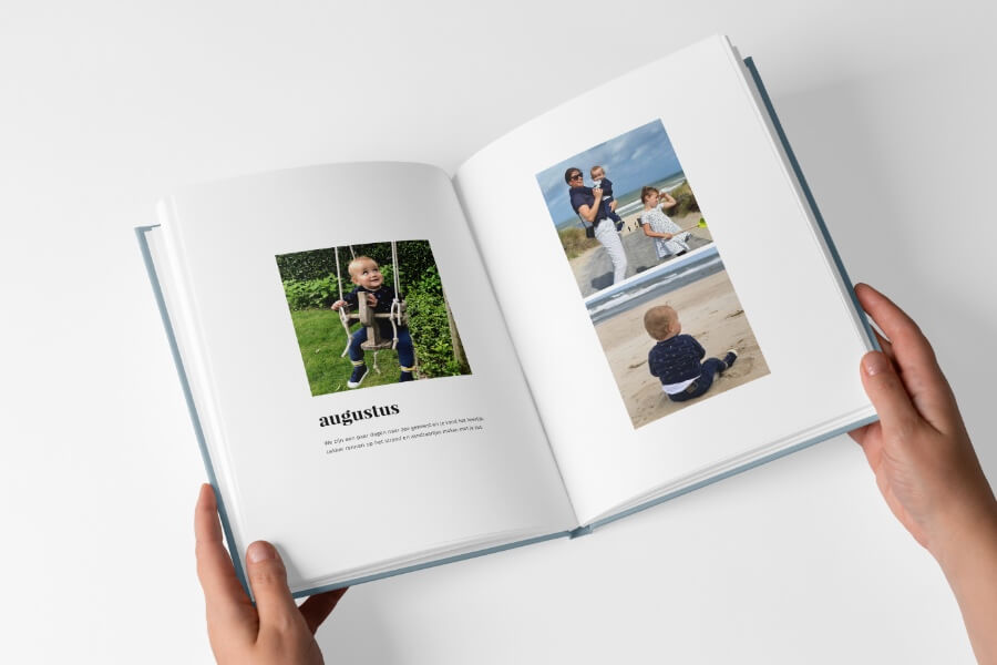 Voor de Pure boeken creëerde ik een tijdloos ontwerp waarin je foto’s stralen. Er is veel rust in het boek, door de zorgvuldig ontworpen pagina’s met veel witruimte. Je hoeft écht niet het boek met perfecte foto’s te vullen, ook de dagelijkse gebeurtenissen komen er juist prachtig in uit! Bewaar die leukste momenten en maak een boek vol herinneringen.