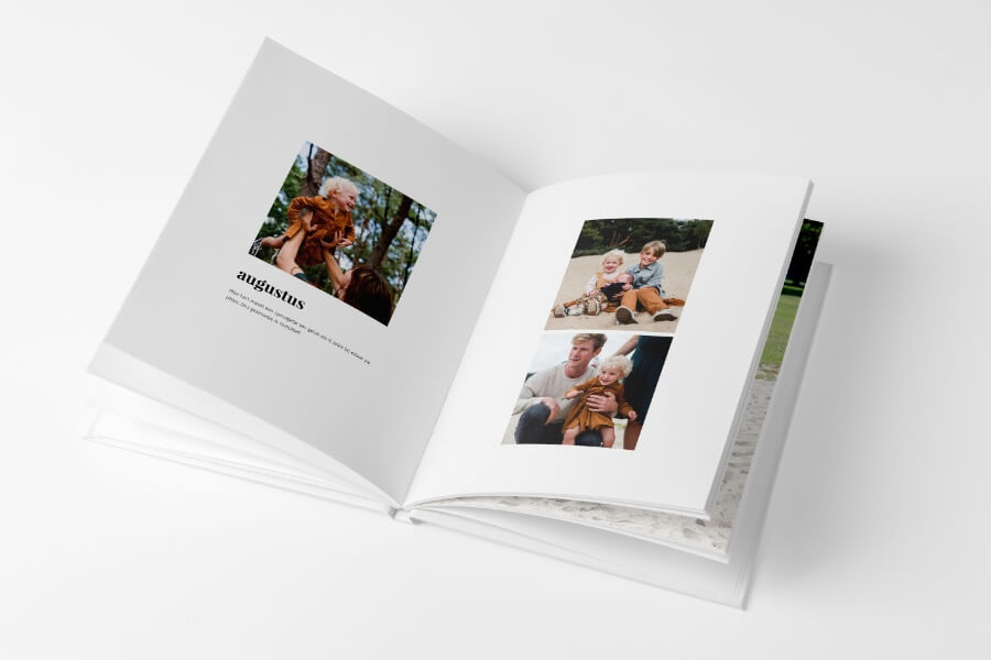 Voor de Pure boeken creëerde ik een tijdloos ontwerp waarin je foto’s stralen. Er is veel rust in het boek, door de zorgvuldig ontworpen pagina’s met veel witruimte. Je hoeft écht niet het boek met perfecte foto’s te vullen, ook de dagelijkse gebeurtenissen komen er juist prachtig in uit! Bewaar die leukste momenten en maak een boek vol herinneringen.