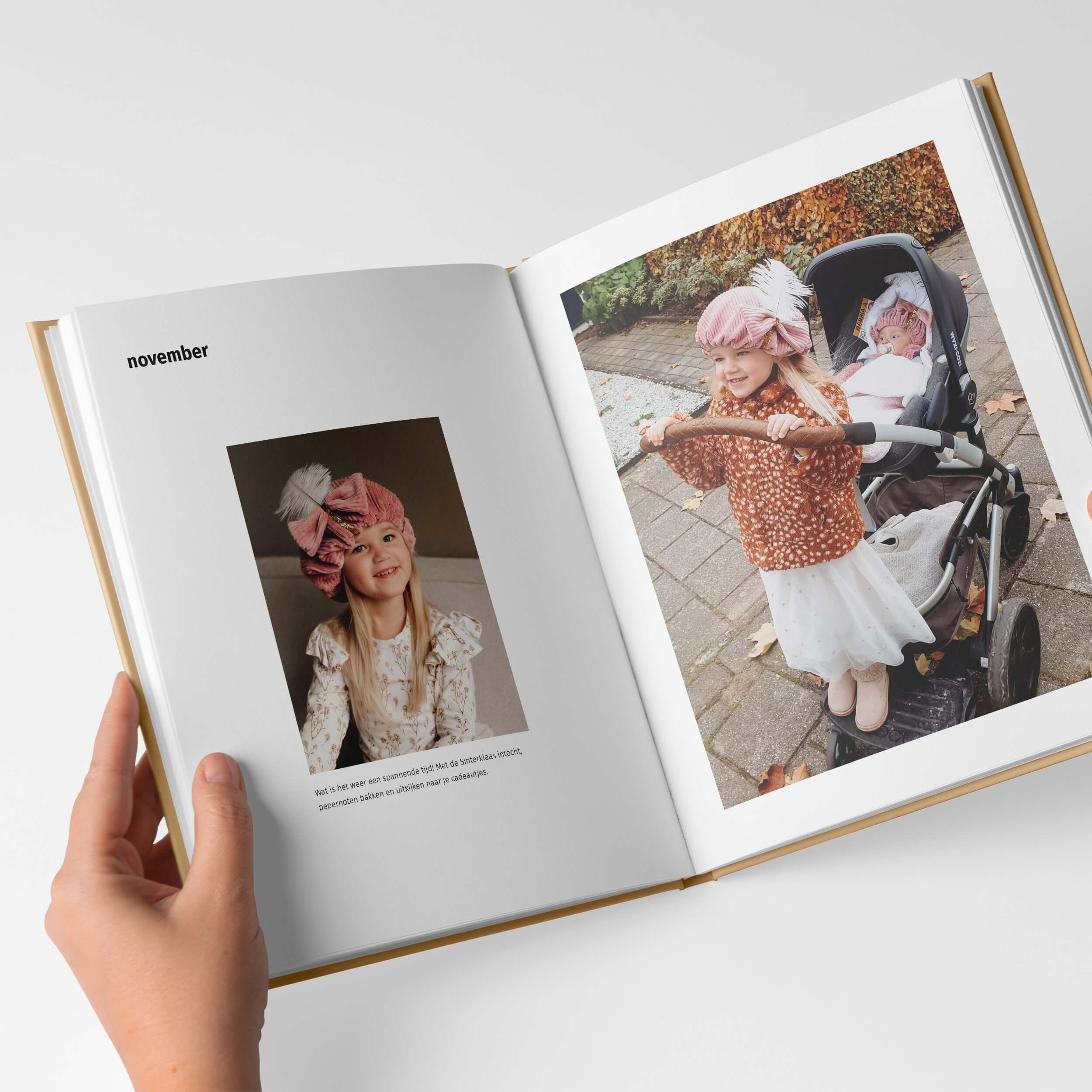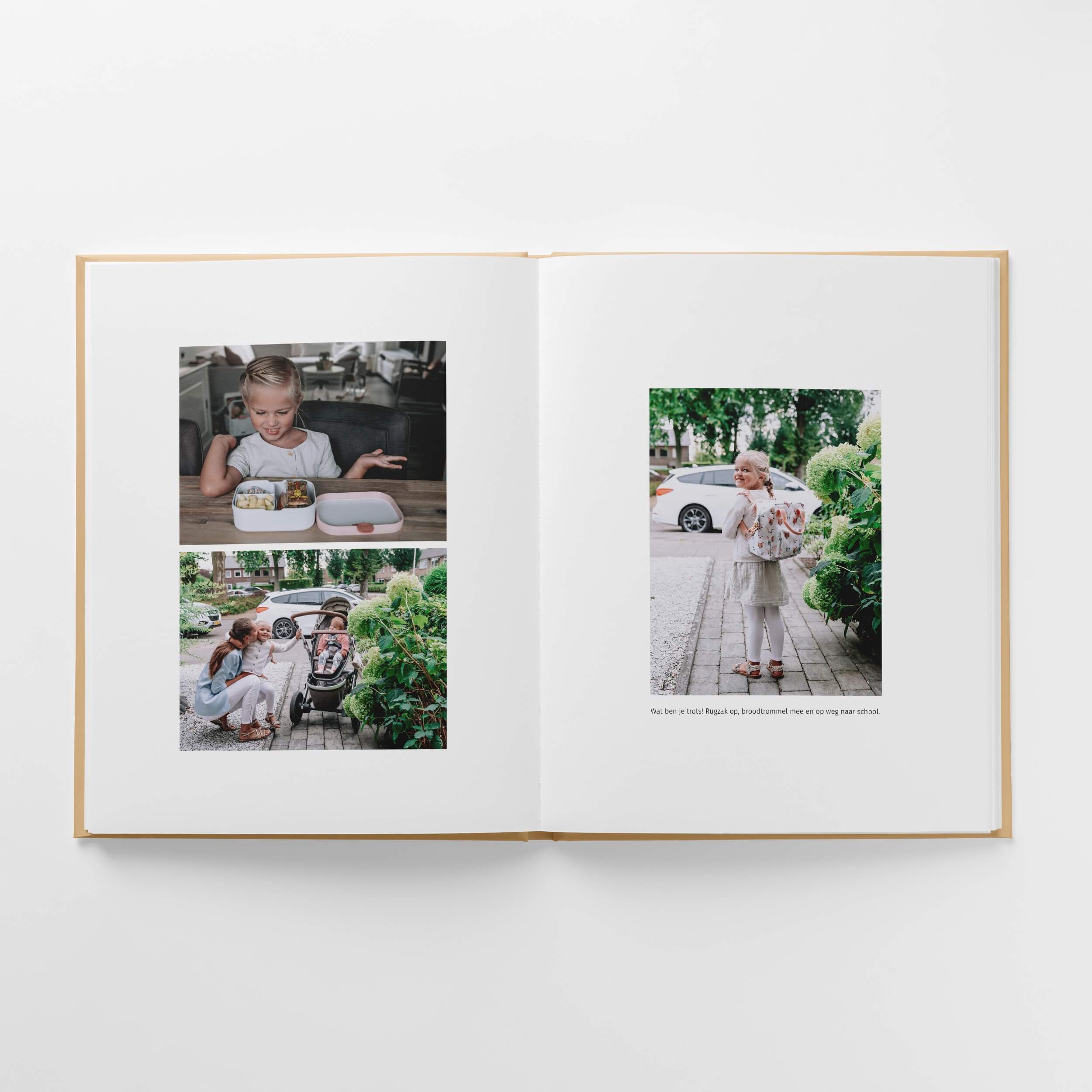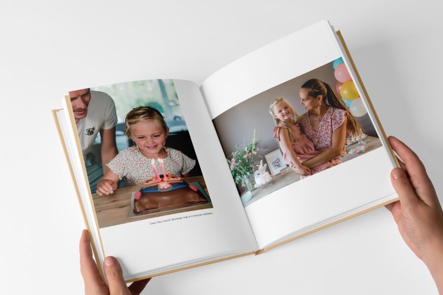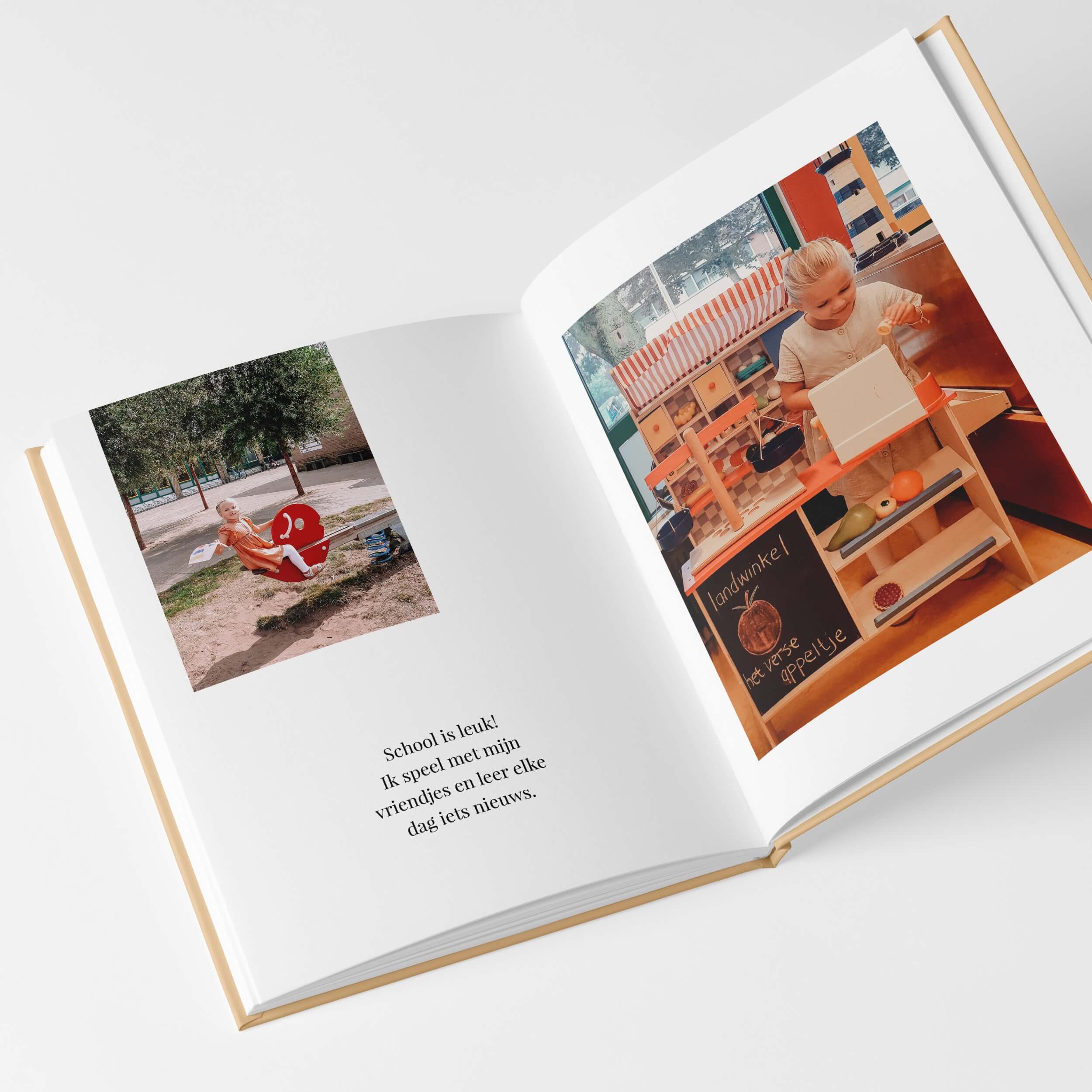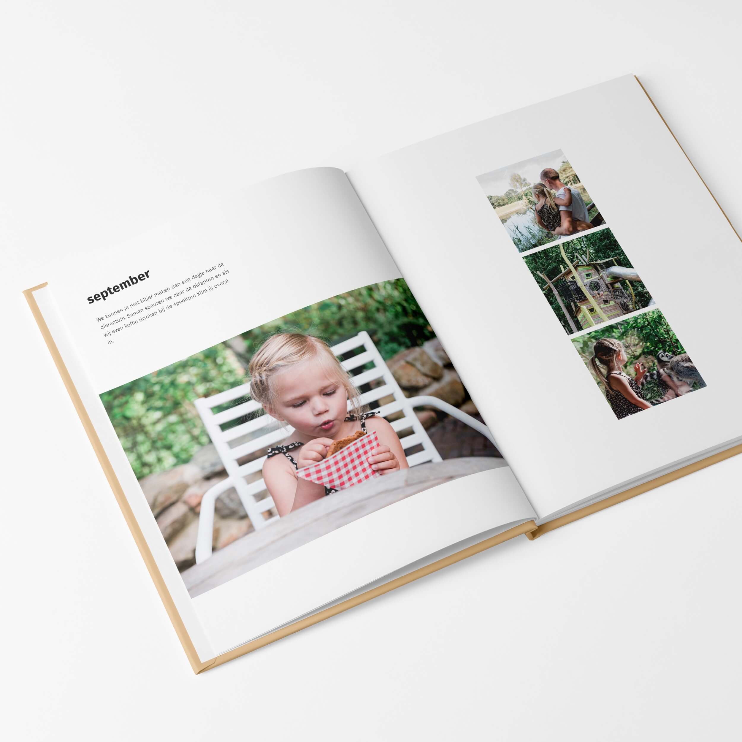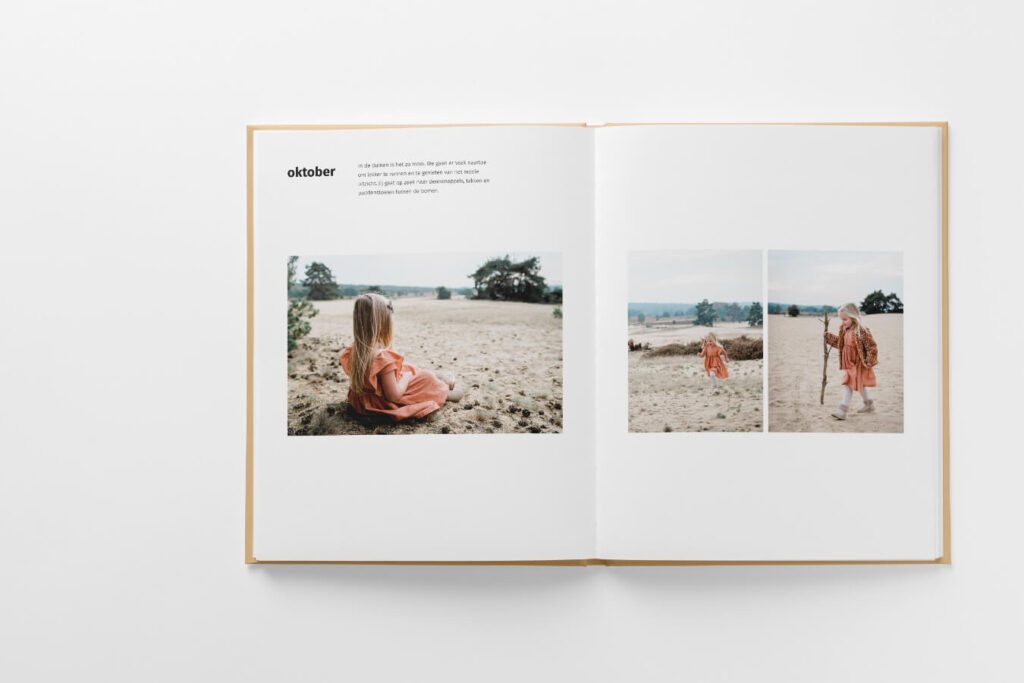 Voor de Pure boeken creëerde ik een tijdloos ontwerp waarin je foto’s stralen. Er is veel rust in het boek, door de zorgvuldig ontworpen pagina’s met veel witruimte. Je hoeft écht niet het boek met perfecte foto’s te vullen, ook de dagelijkse gebeurtenissen komen er juist prachtig in uit! Bewaar die leukste momenten en maak een boek vol herinneringen.
