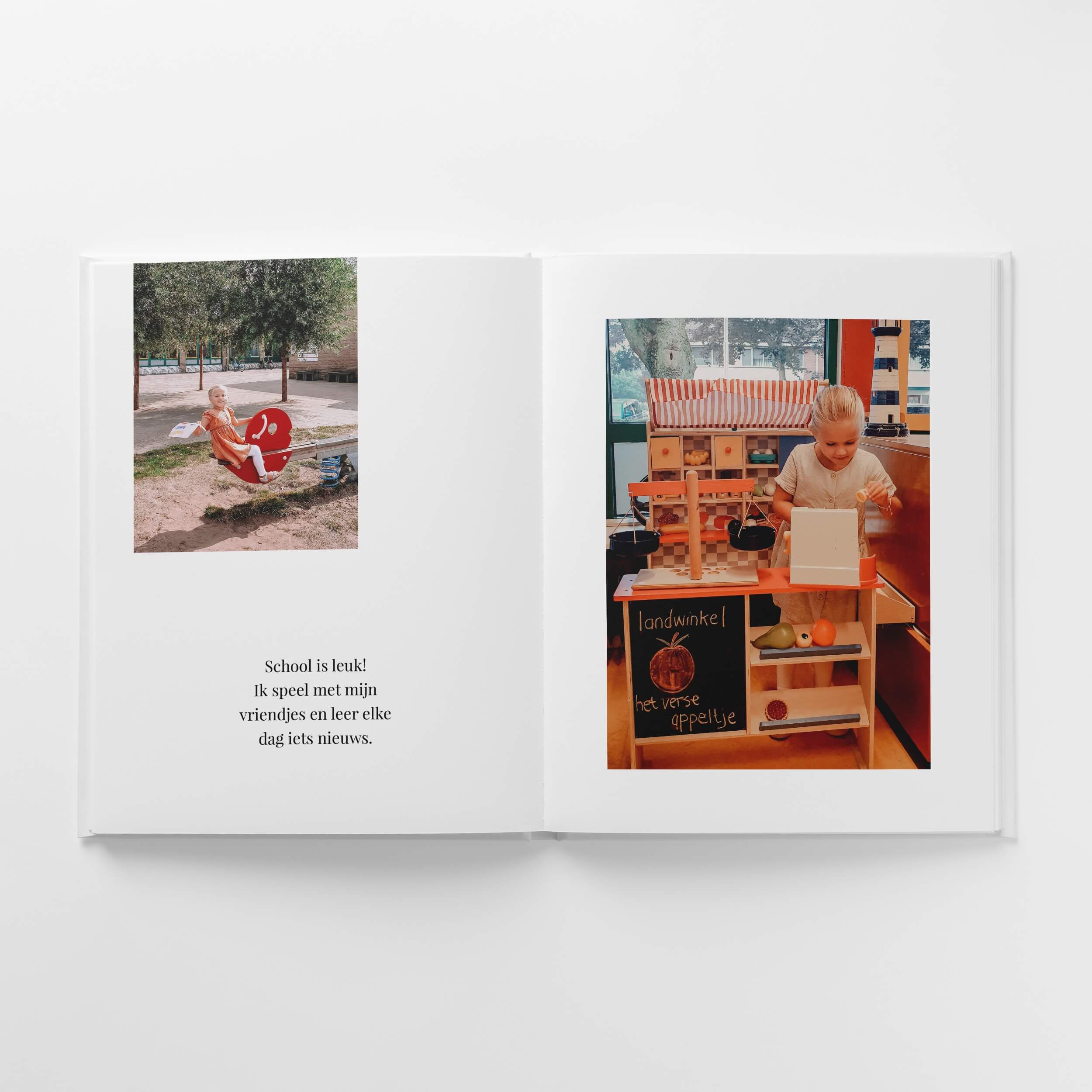 Het Pure white design geeft je fotoalbum een strakke, moderne look. Met veel witruimte en aandacht voor typografie schitteren je foto's in stijlvolle eenvoud. Speciaal ontworpen voor de hoogtepunten van het vierde jaar en de eerste weken op school.