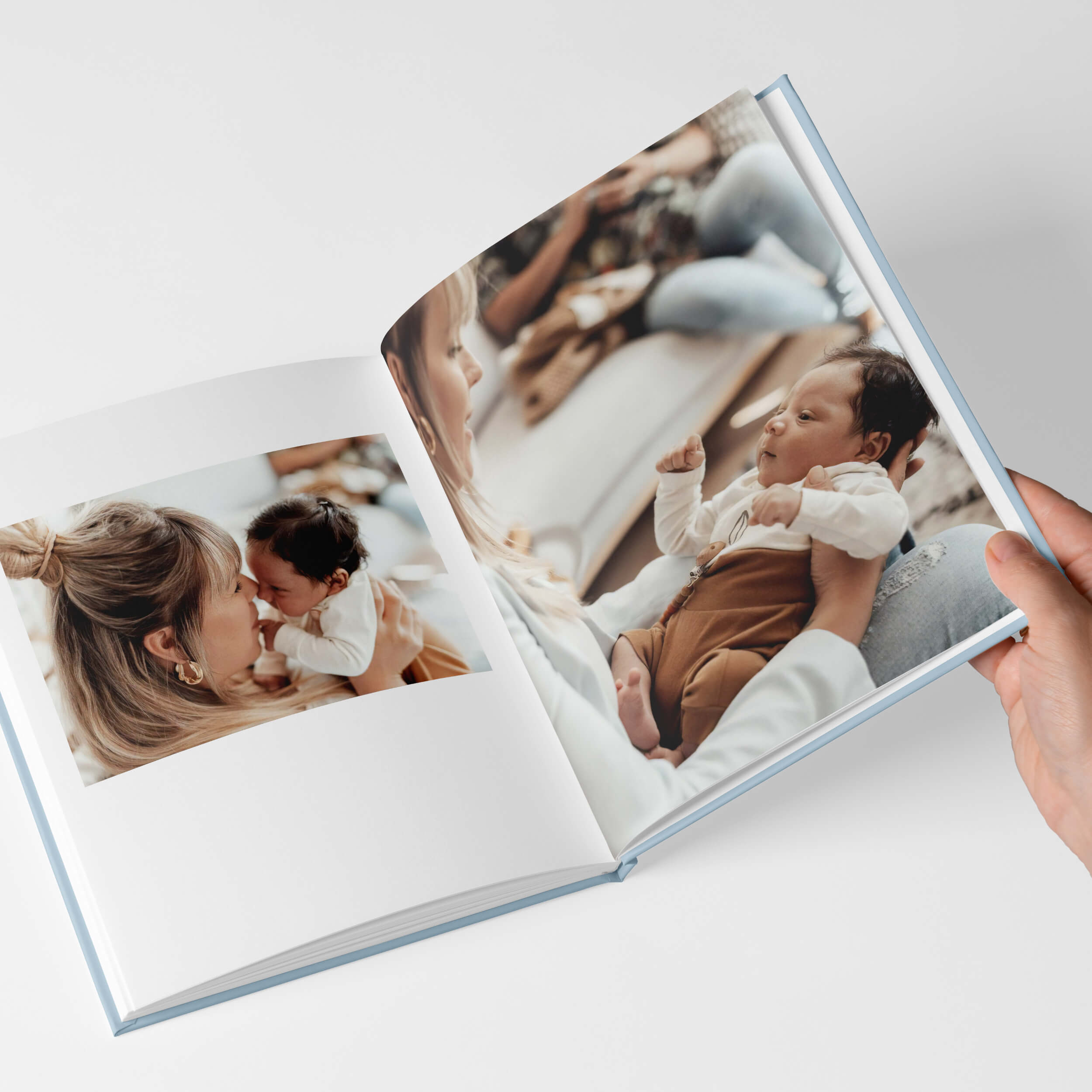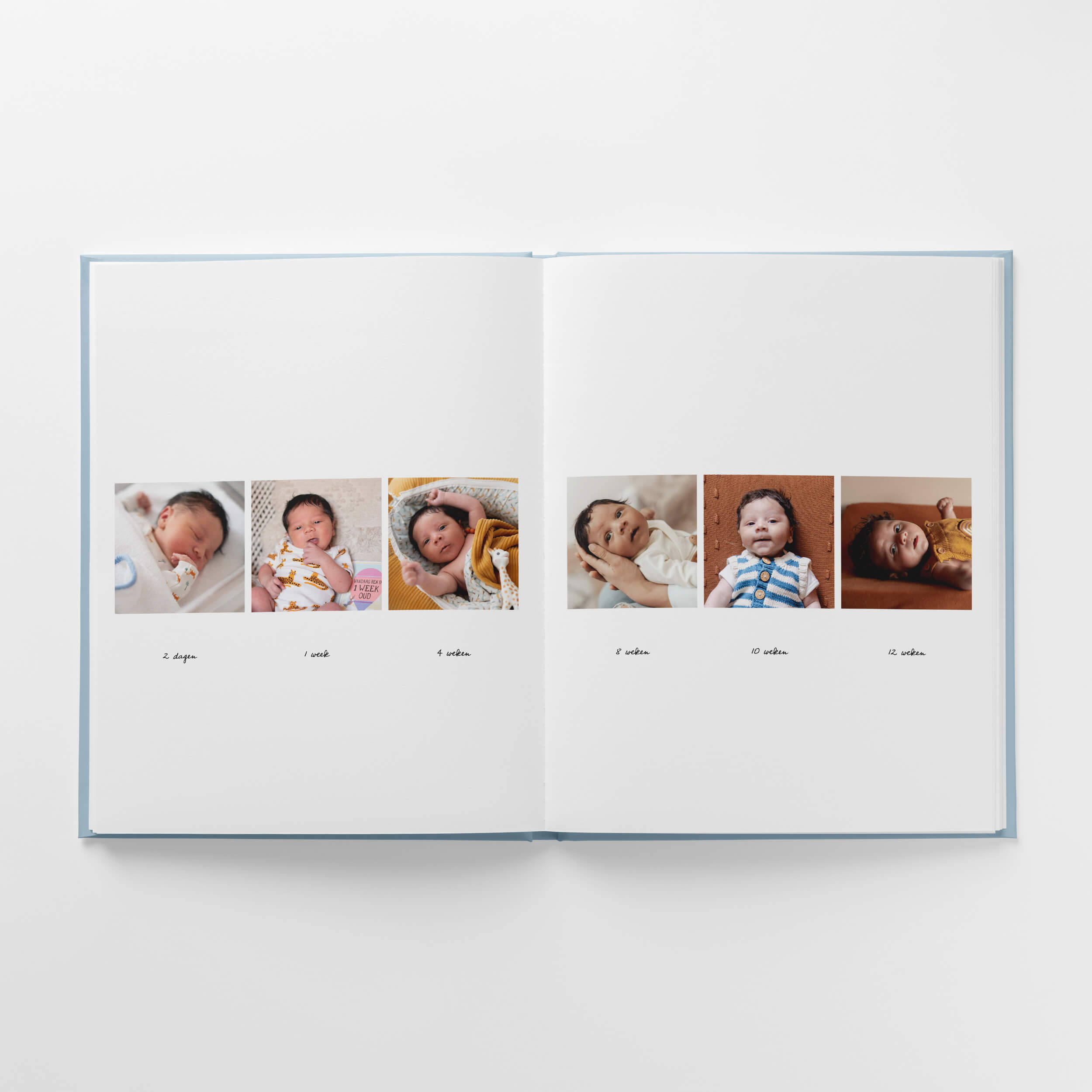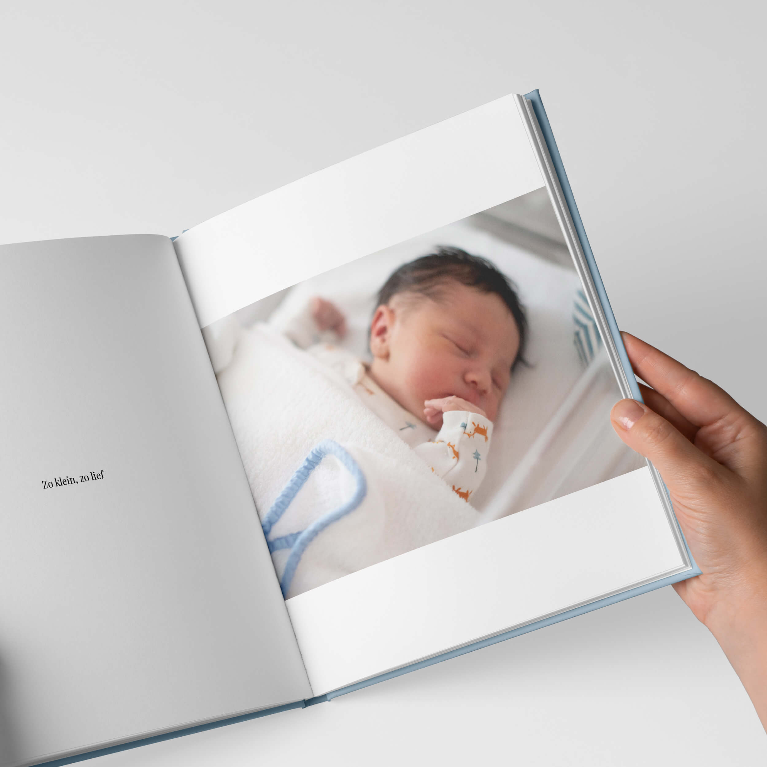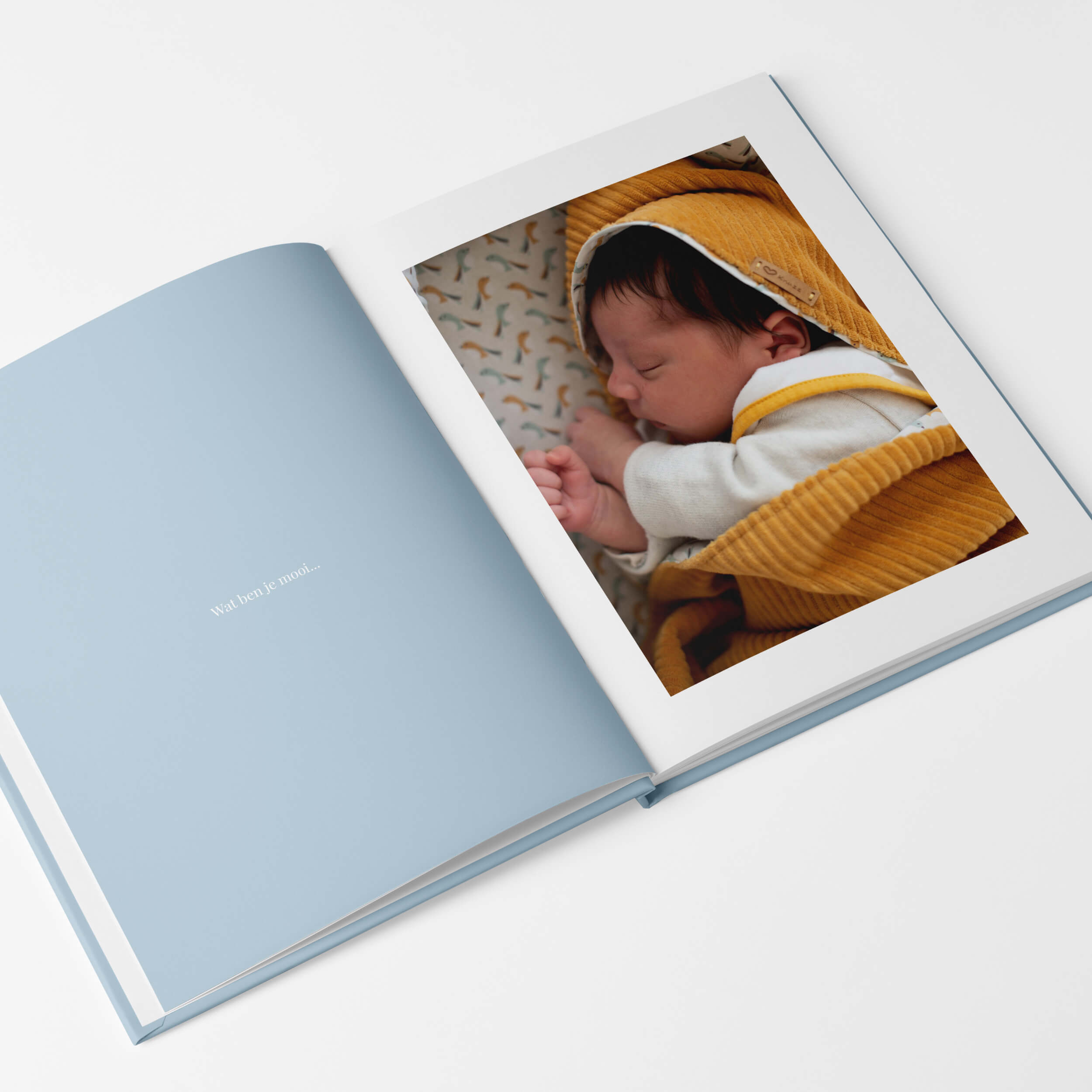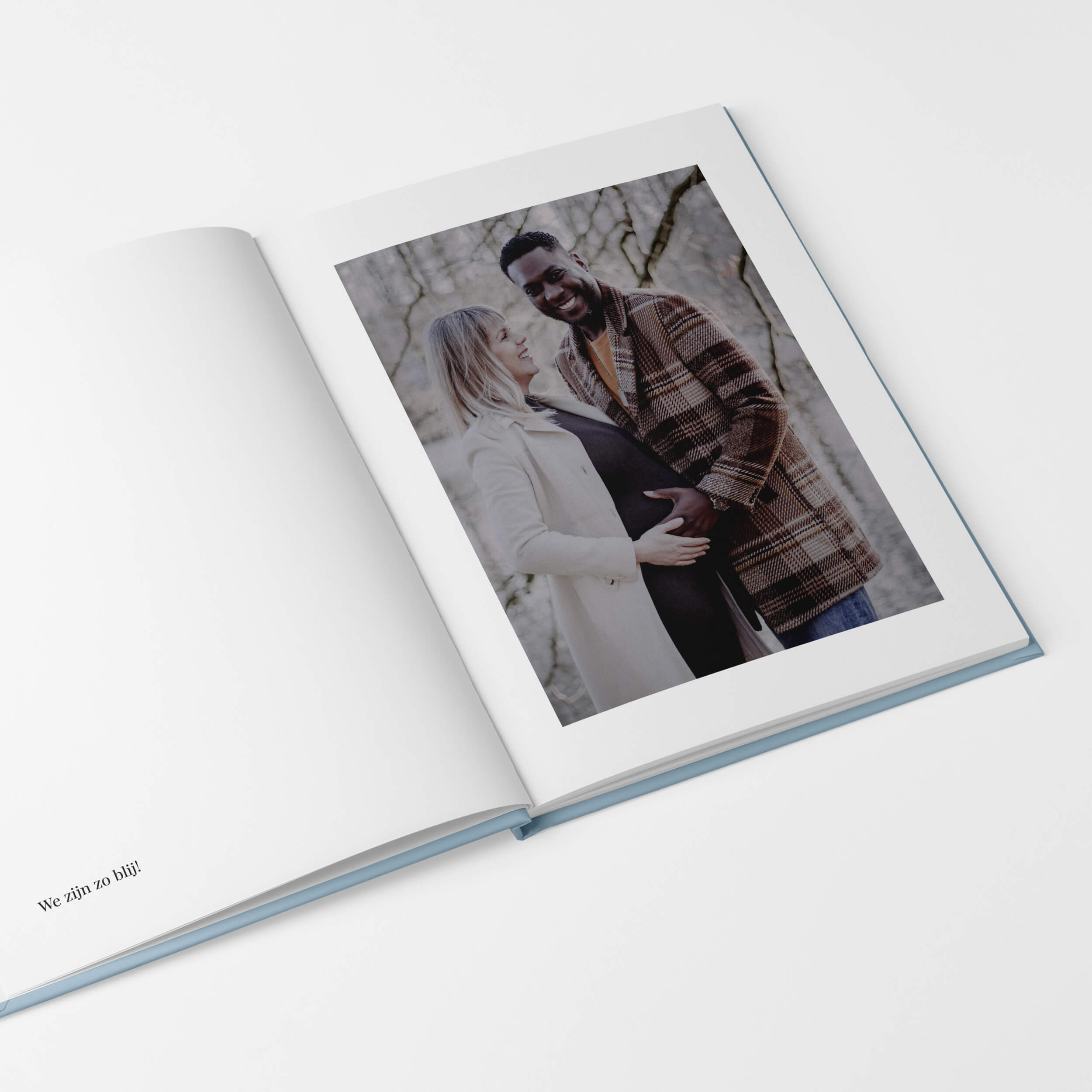 Met het Pure sky design kies je voor een stijlvol fotoalbum met verfijnde typografie. Met zachte lichtblauwe kleuraccenten die prachtig aansluiten bij de foto’s van je kind. Perfect voor de mooiste momenten van je zwangerschap en kraamtijd.