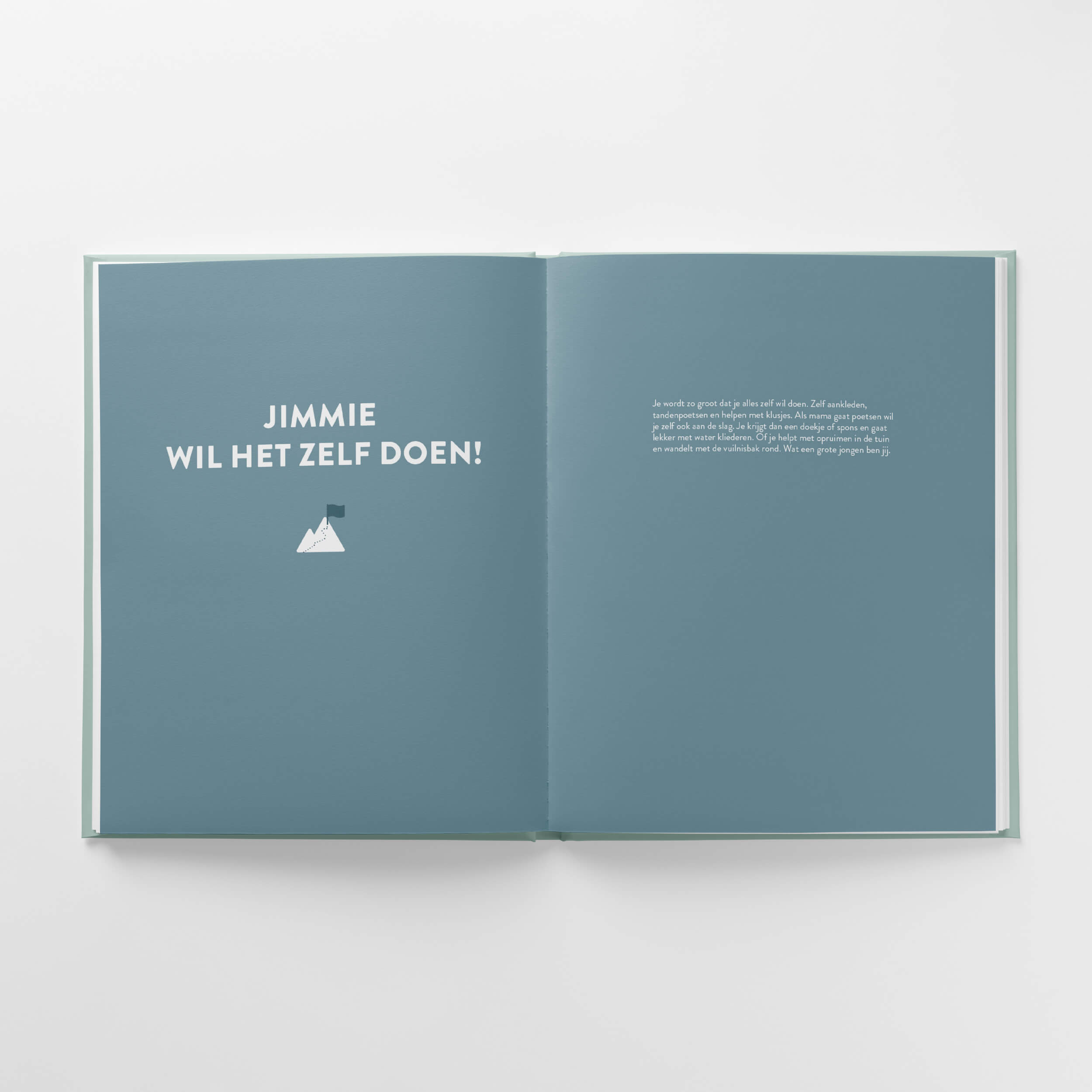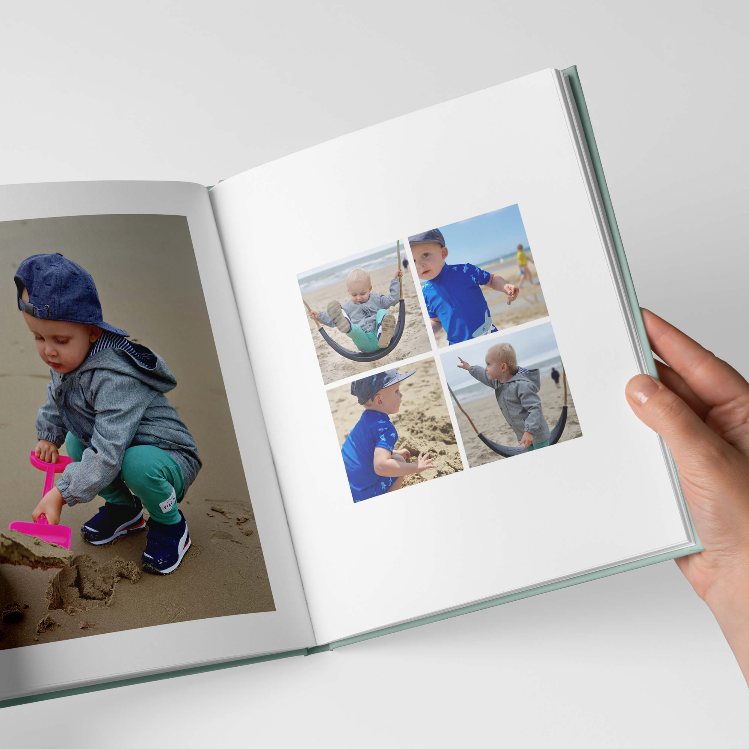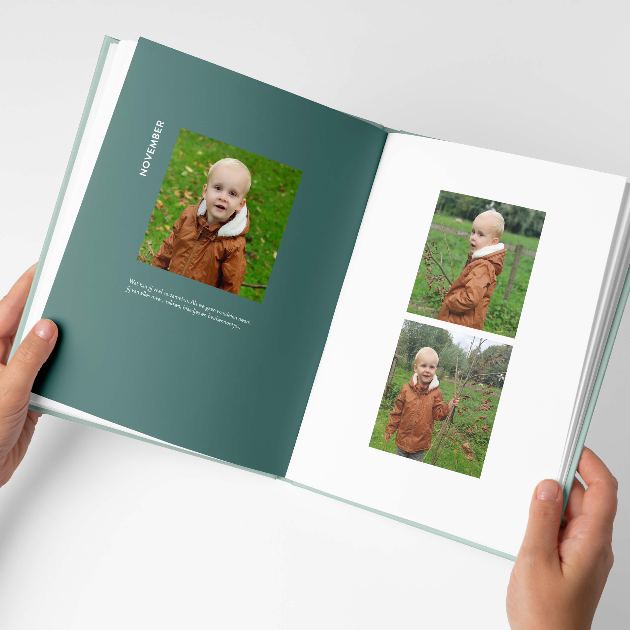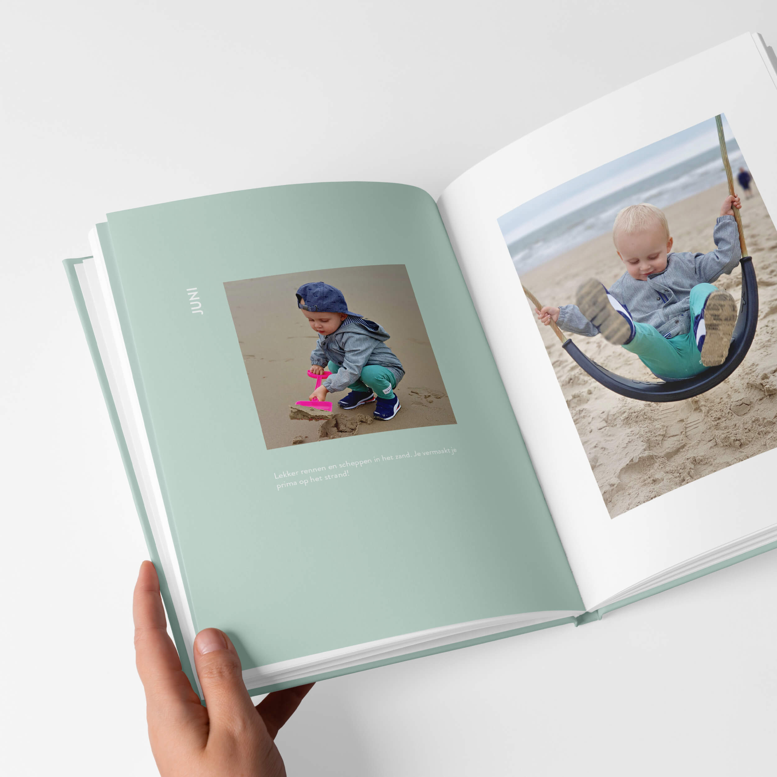 Ik wilde graag dat de boeken leuk zijn om vaak te bekijken, voor jou én voor je kindje. De kleuren vormen de basis in dit design, ik heb ze in balans gebracht met het verhaal. Als je goed kijkt zul je zien dat ze precies aansluiten bij de fases die je kindje op de foto's doormaakt.