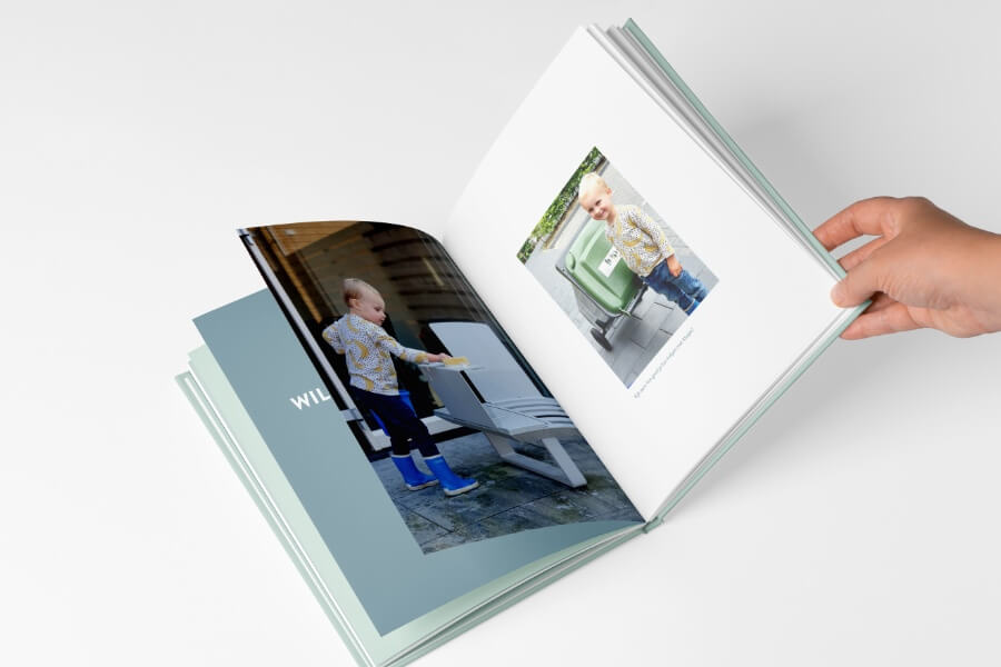 Bij het maken krijg je opdrachtjes en inspiratie. Jij hoeft alleen je foto’s erin te slepen. Om je te helpen bij de fotoselectie laten we bij de foto’s zien hoe oud je kind toen was. Wel zo makkelijk!