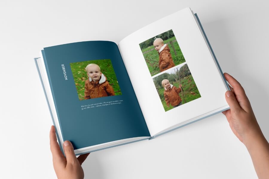 Bij het maken krijg je opdrachtjes en inspiratie. Jij hoeft alleen je foto’s erin te slepen. Om je te helpen bij de fotoselectie laten we bij de foto’s zien hoe oud je kind toen was. Wel zo makkelijk!
